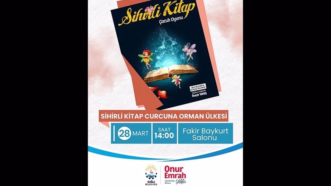 Çiğli Belediyesi, çocukları da tiyatronun büyülü dünyasıyla buluşturuyor. 28 Mart Cumartesi günü saat 14.00’da Fakir Baykurt Salonu’nda sahnelenecek “Sihirli Kitap Curcuna Orman Ülkesi” adlı çocuk oyunu, renkli sahne performansıyla minik izleyicilere unutulmaz anlar yaşatacak. Oyunun yazarlığını ve yönetmenliğini Üzeyir Tavuş üstleniyor.